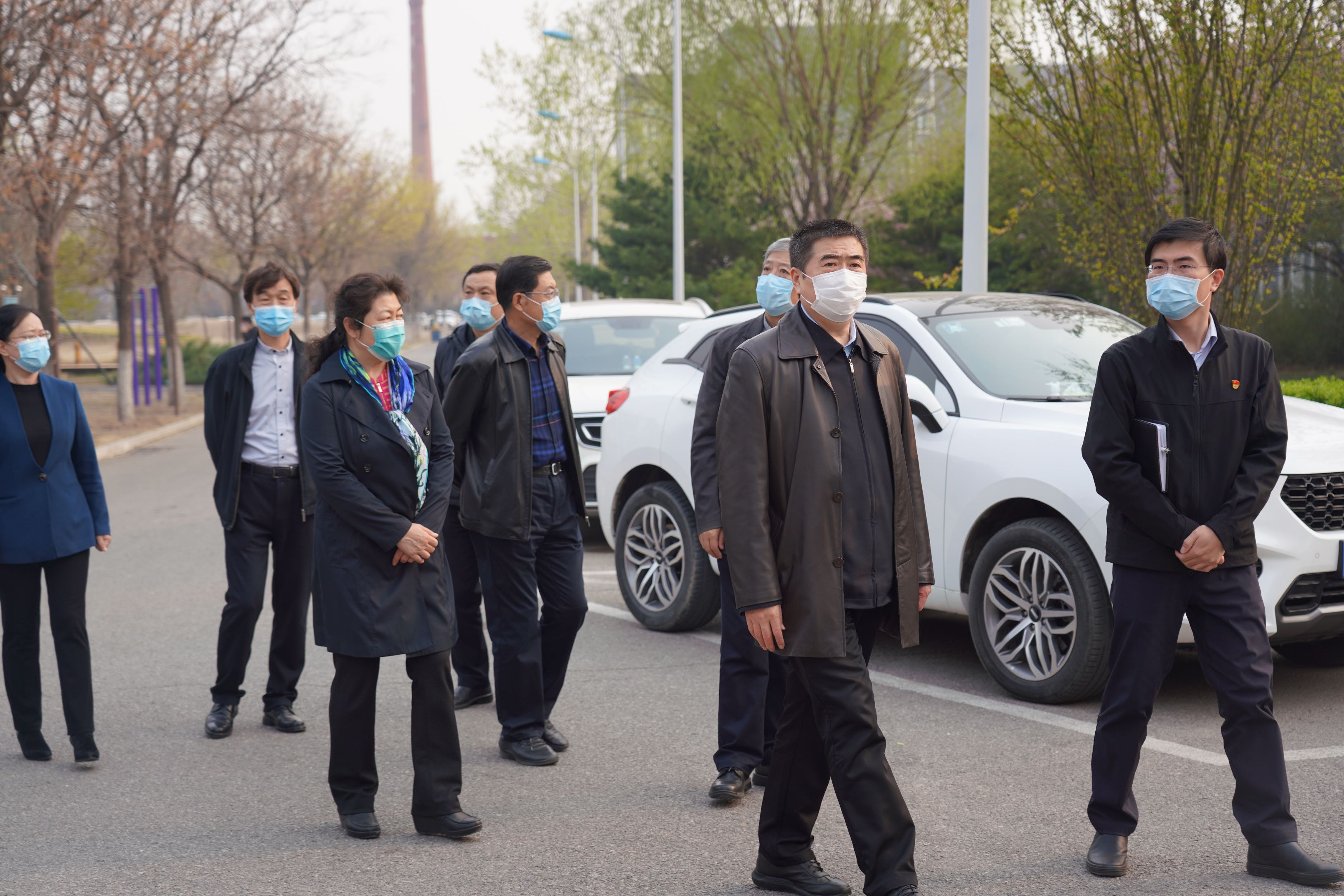 蘇總一行在測量體溫后進入園區,對園區進行實地調研。