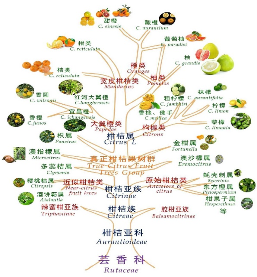 柑和桔二者常統稱為“柑桔”,屬于蕓香科(Rutaceae)柑桔屬木本植物,共有17個種,分成6個種群:大翼橙類、宜昌橙類、枸櫞檸檬類、柚類、橙類和寬皮桔類。柑桔類水果主要包括:桔、柑、柚子、葡萄柚、枸櫞、甜橙、酸橙、金柑、檸檬等,其中最具經濟價值和食用價值的依次是甜橙、桔、柑、柚子、檸檬等。